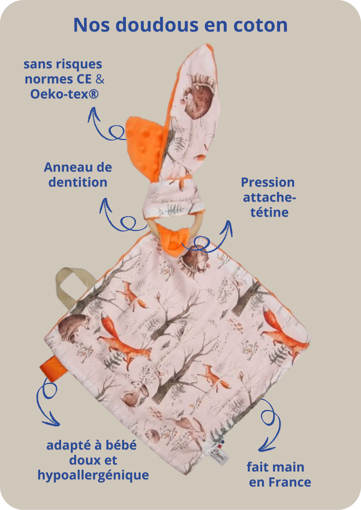Chaque doudou est confectionné avec soin dans notre atelier français, à la main.